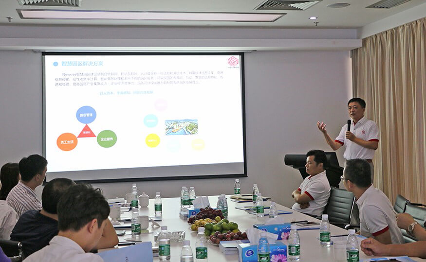 针对当前全国各地大力推进智慧城市建设这一浪潮,朱勇杰还向各位领导介绍了今年会jinnianhui智能研发的智慧建设解决方案,着重阐述了其中的智慧城市解决方案,指出该方案以“互联网+”促进电子政务全面转型,利用创新2.0驱动智慧城市转型升级,发展以“互联网+”为核心要素的智慧产业,打造智慧高效的网络安全保障体系,建设统一的智慧城市信息资源体系。